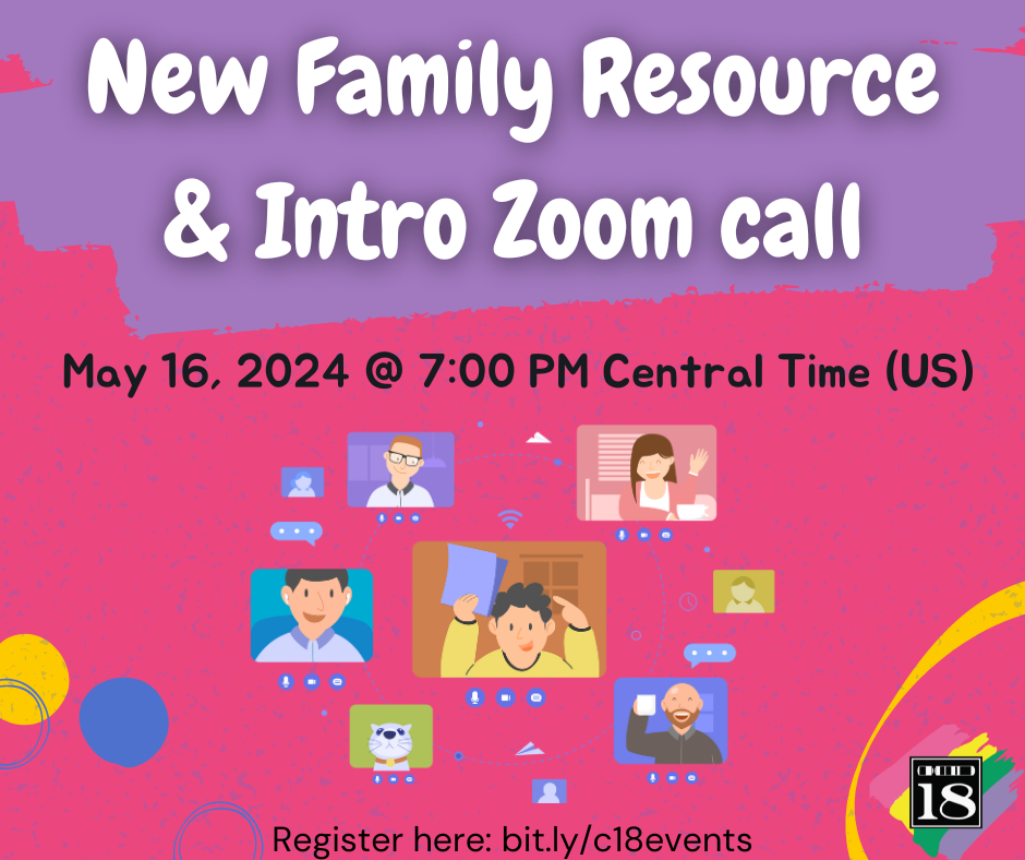 We invite our families new to Chromosome 18 to join us for an opportunity to connect and meet other parents at our next New Member Zoom Call on Thursday, May 16th, 2024 at 7:00pm Central Time (US).